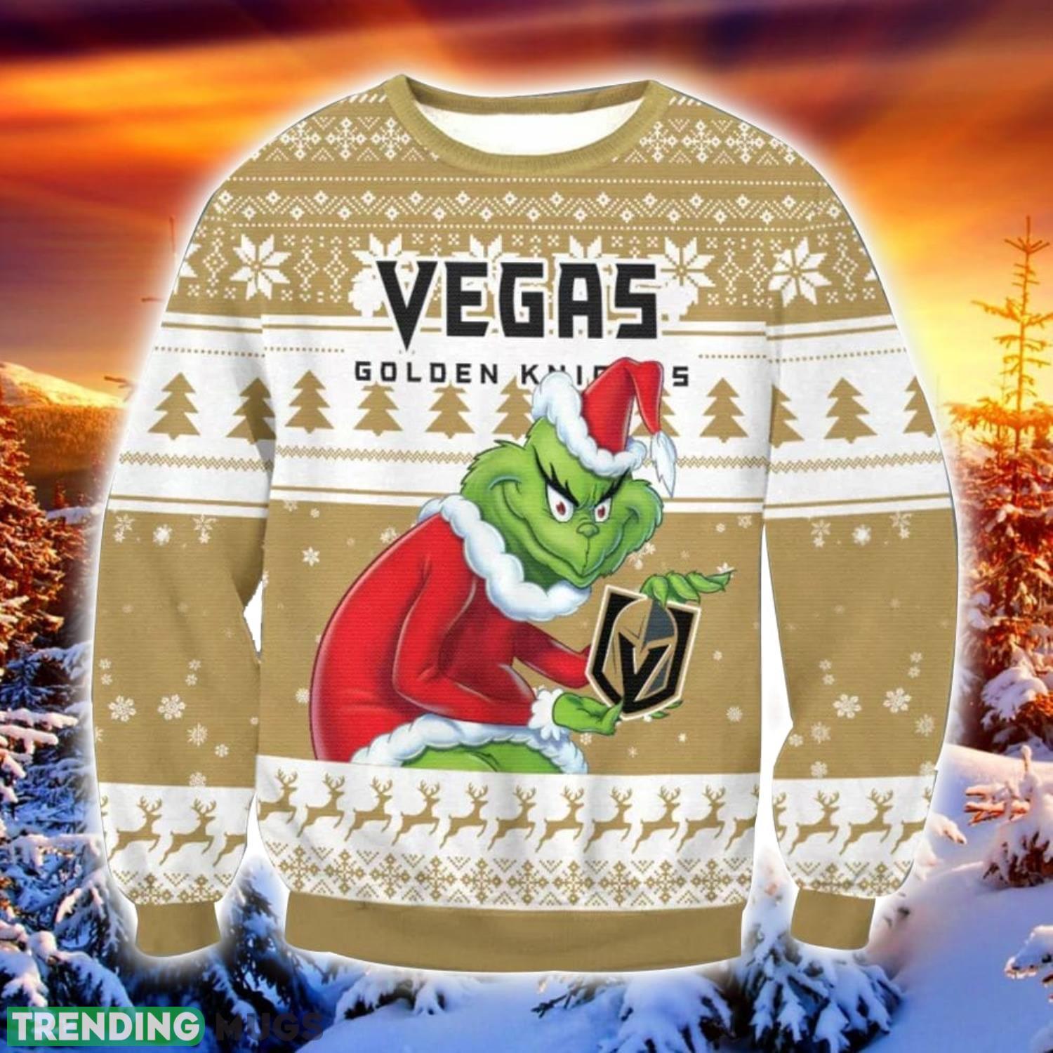 NHL Vegas Golden Knights Grinch Ugly Christmas Sweater Trending Sweater For 2023 Christmas Holidays Product Photo 1