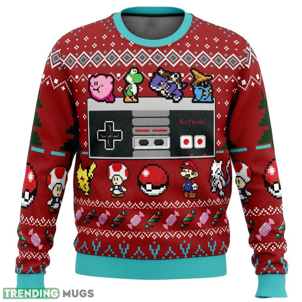 Crafted with care, this Christmas sweater features a playful pattern showcasing iconic Nintendo controllers. From the classic NES to the modern Switch, relive your favorite gaming memories with every glance. The vibrant colors and intricate details truly make this sweater a standout piece at any holiday gathering.