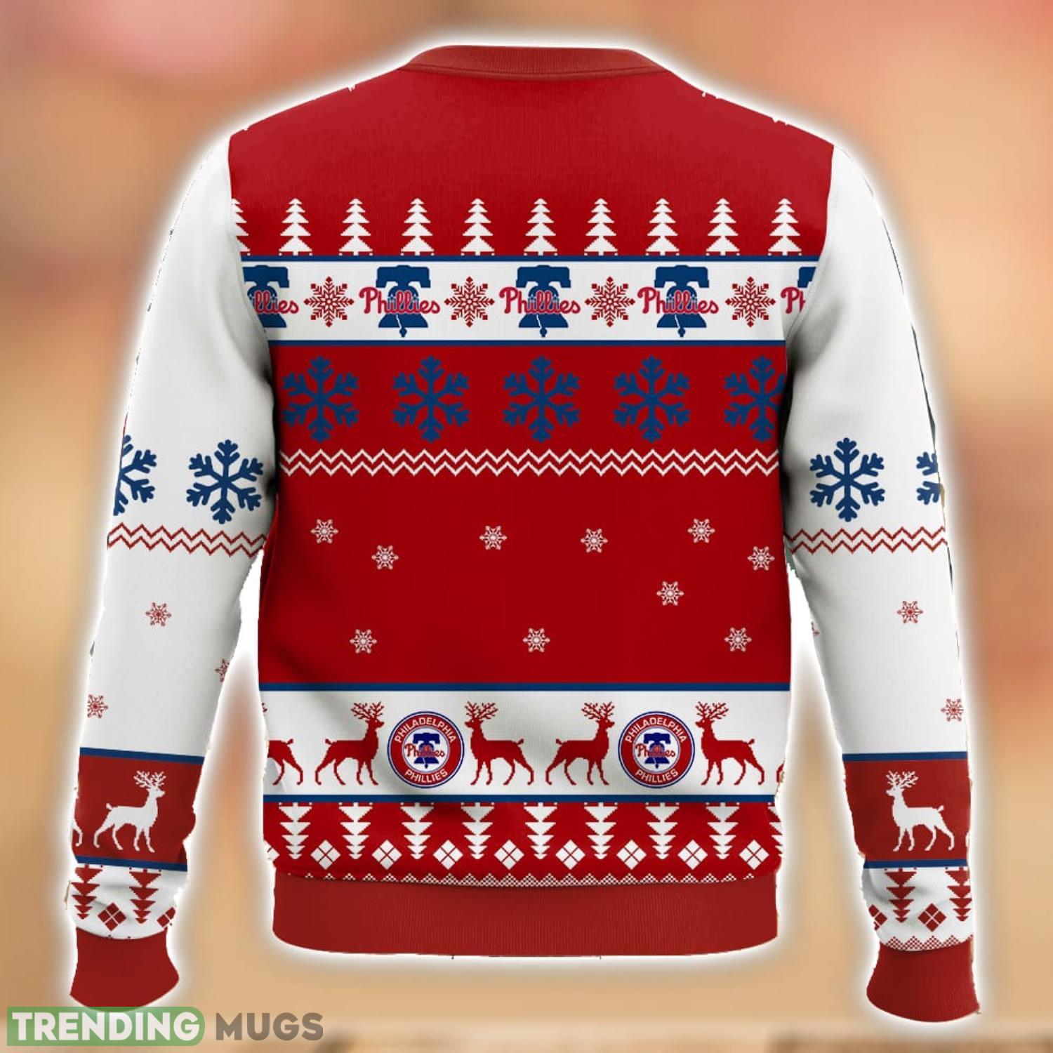 Featuring the iconic Philadelphia Phillies logo and team colors, this sweater proudly showcases your love for the team. Whether you’re attending an ugly sweater party or simply want to show off your team spirit during the holiday season, this sweater is a must-have.