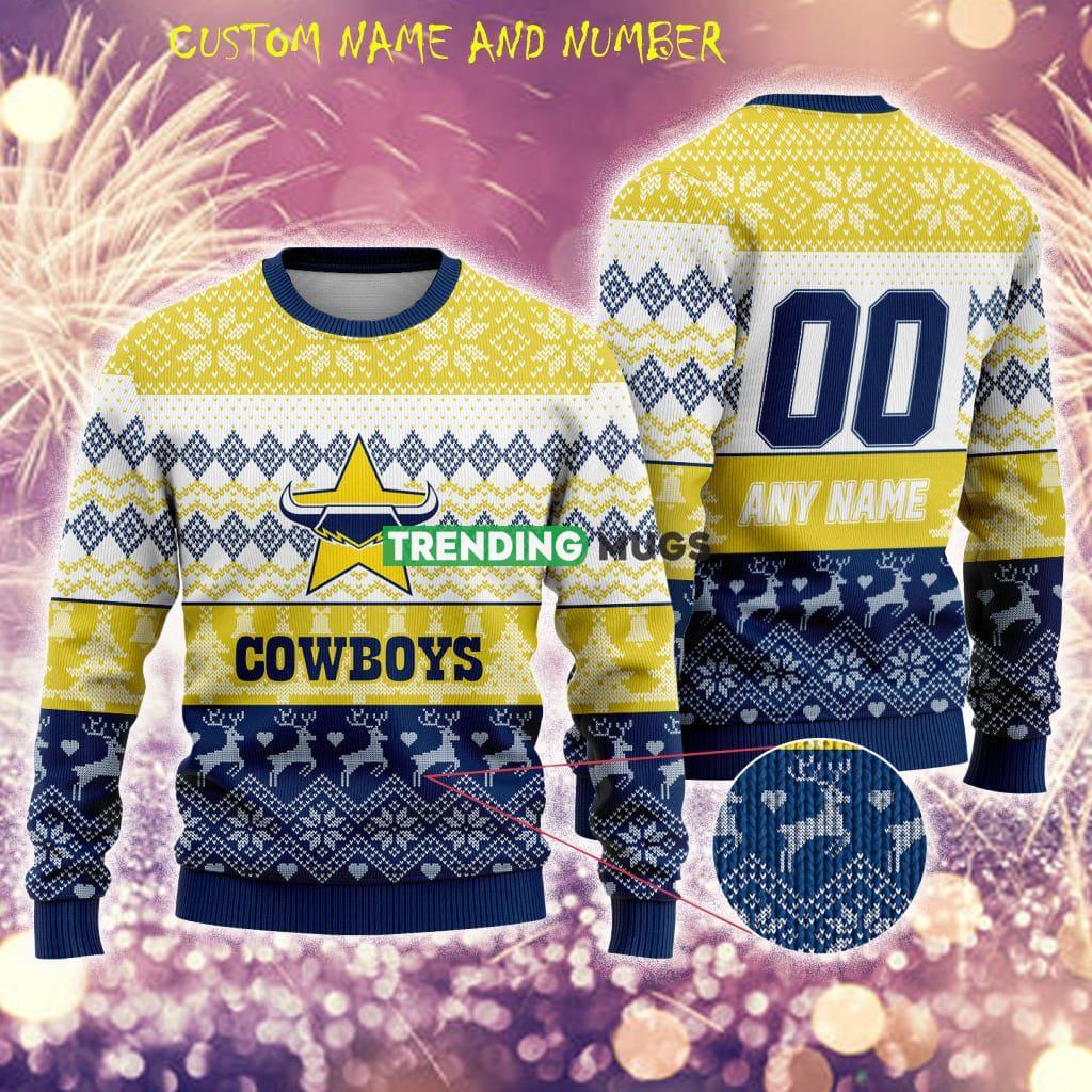 North Queensland Cowboys NRL Christmas Cute 3D Ugly Sweater Gift For Men And Women Custom Number And Name Informations: