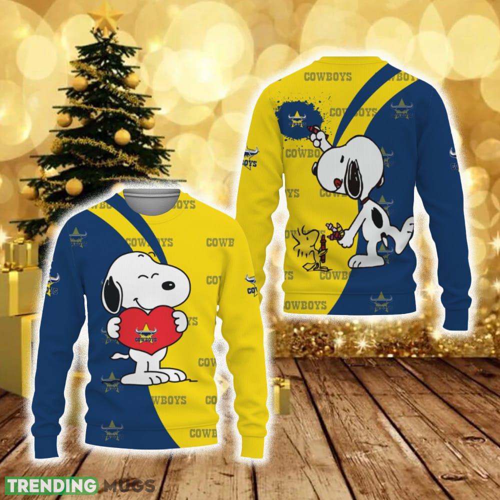 Don’t miss out on this must-have Christmas gift! Surprise your loved ones or treat yourself to this North Queensland Cowboys Snoopy Cute Heart American Sports Team Funny 3D Sweater. Order now and spread the holiday cheer with style!