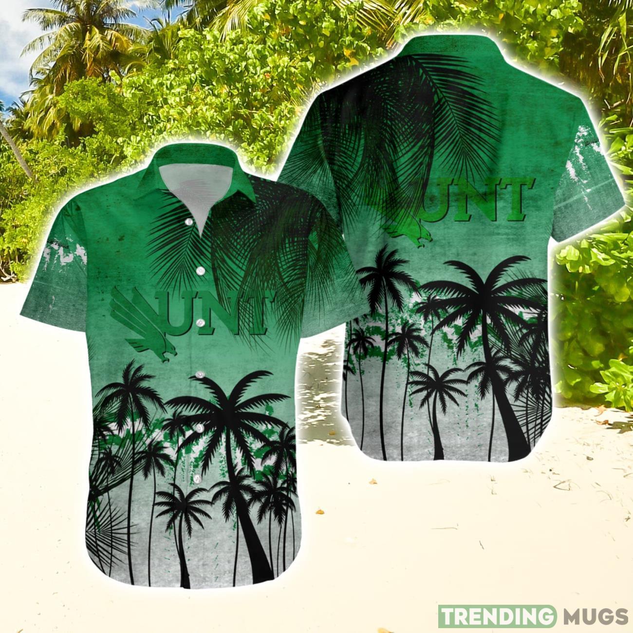 North Texas Mean Green Hawaiian Shirt Summer Gift Coconut Tree Tropical Grunge Pattern For NCAA Fans Product Photo 1