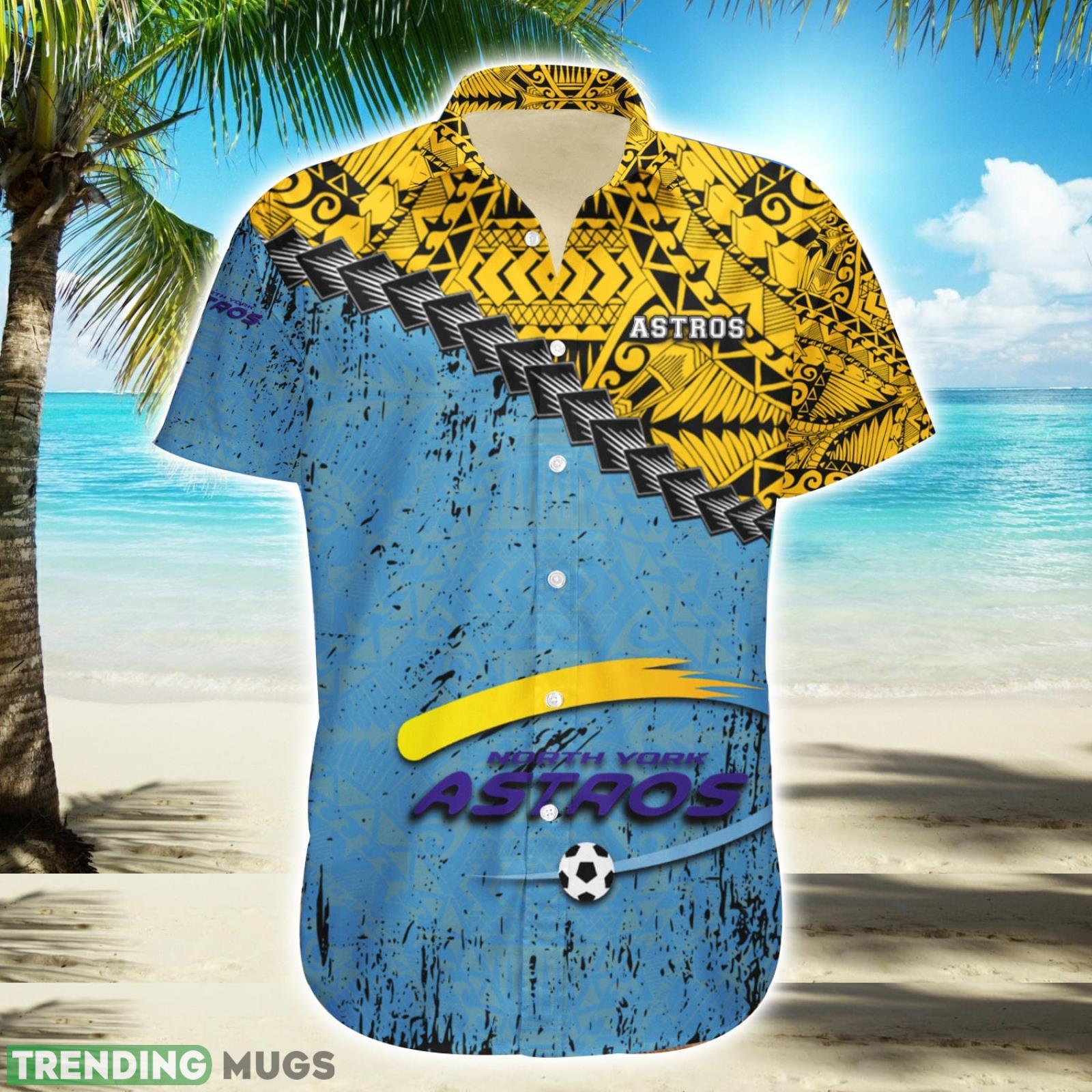 North York Astros Ca Soccer Grunge Polynesian Tattoo Pattern Hawaiian Shirt For Fans Details: