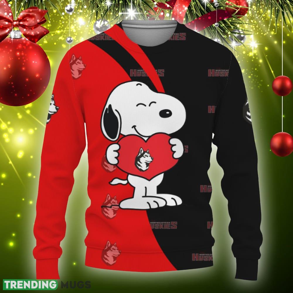 Northeastern Huskies Snoopy Cute Heart American Sports Team Knitted Xmas 3D Sweater Gift Holidays – Northeastern Huskies Snoopy Cute Heart American Sports Team Sweatshirt-3D Sweatshirt_3