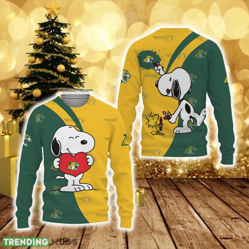 Northern Michigan Wildcats Snoopy Cute Heart American Sports Team Funny 3D Sweater For Men And Women Gift Christmas Informations:
