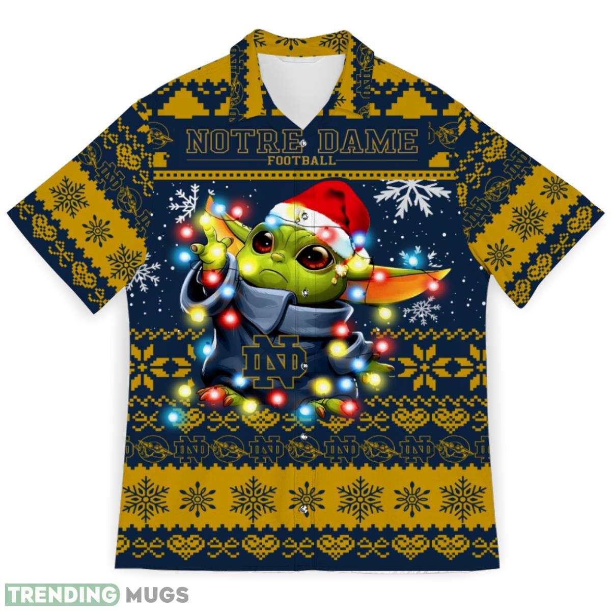 Notre Dame Fighting Irish Baby Yoda Star Wars Sports Football Ugly Christmas Sweater Pattern 3D Hawaiian Shirt Christmas Gift Product Photo 1
