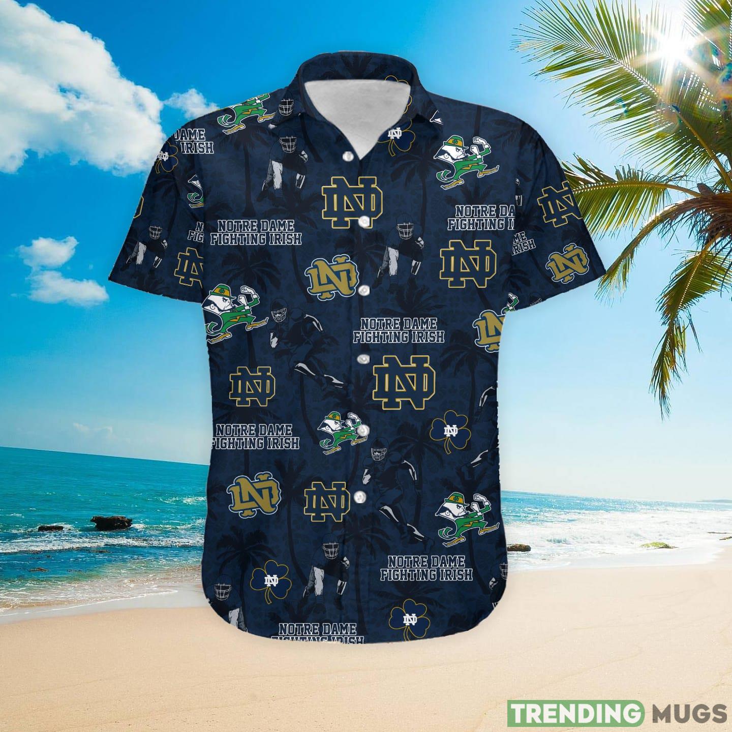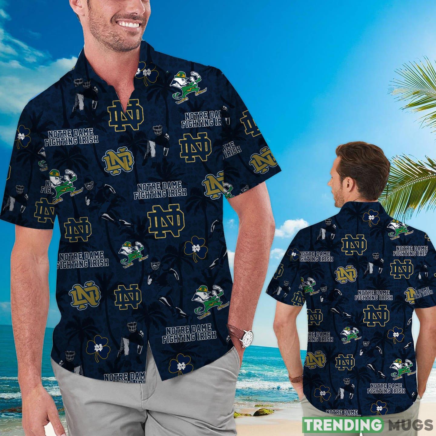 Looking for a stylish and unique way to show your support for the Notre Dame Fighting Irish? Check out our custom name Hawaiian shirt! This shirt is perfect for any tropical beach occasion, and it shows your team pride in a fun and fashionable way. The shirt is made of 100% cotton for a comfortable and breathable fit, and it features a coconut tree design with the Notre Dame logo. Order yours today and show your team spirit in style!