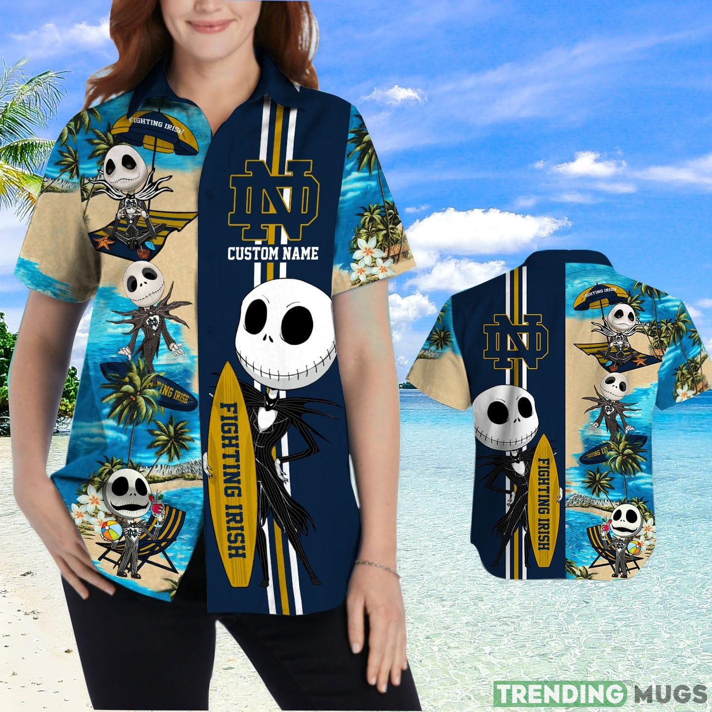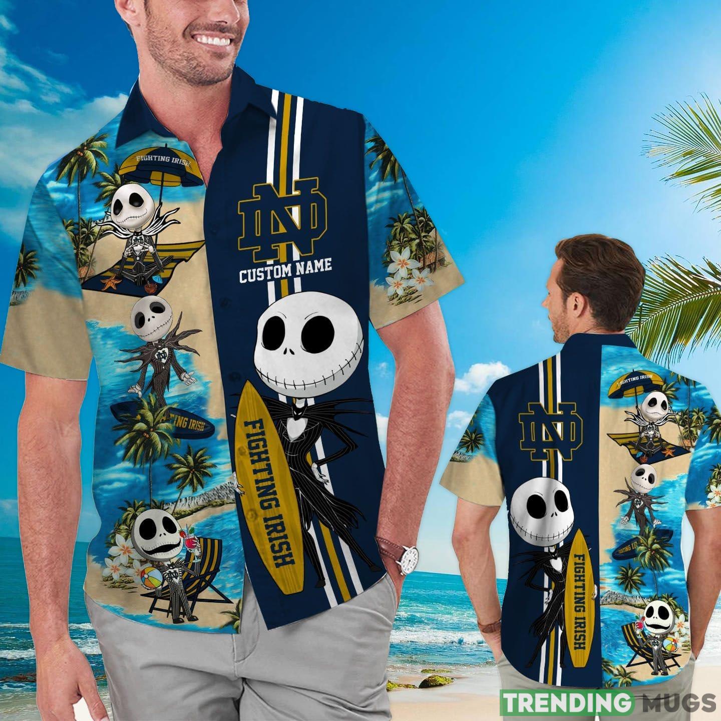 Notre Dame Fighting Irish Jack Skellington Custom Name Hawaiian Shirt Details: