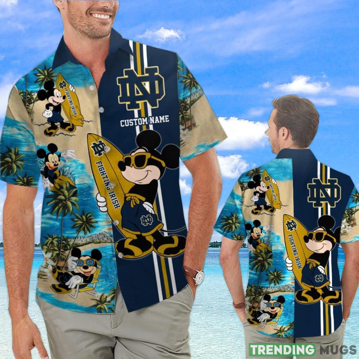 Notre Dame Fighting Irish Mickey Surfing Lover Custom Name Hawaiian Shirt Details: