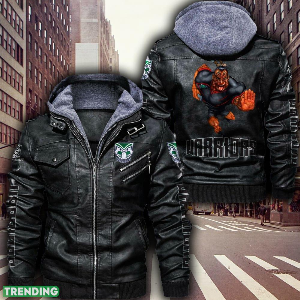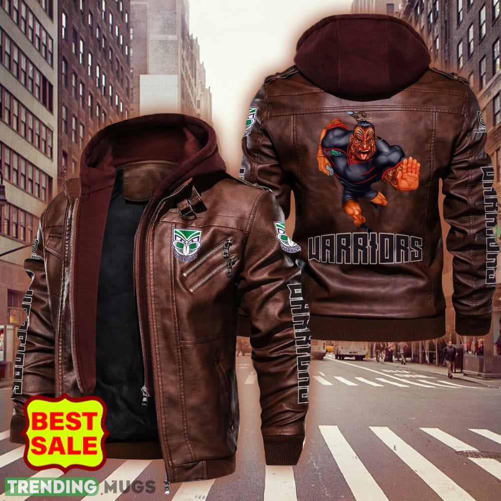Elevate your game day attire and show your support in style with this NRL New Zealand Warriors Style 4 Big Logo Black Brown Leather Jacket For Fans. Order now and wear your fandom with pride!