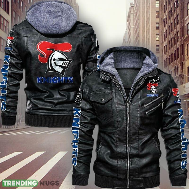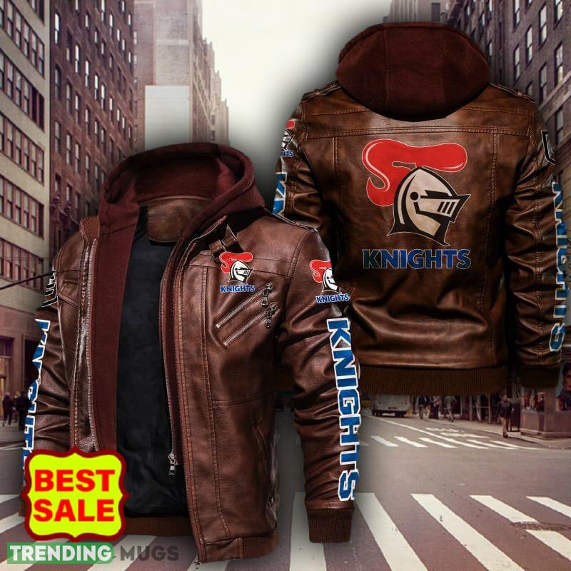 NRL Newcastle Knights Style 2 Logo Black And Brown Leather Jacket Men Women 2D Leather Jacket