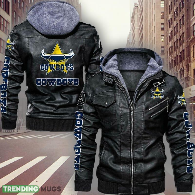 Some of the NRL North Queensland Cowboys Big Logo Black Brown Leather Jacket For Fans photos