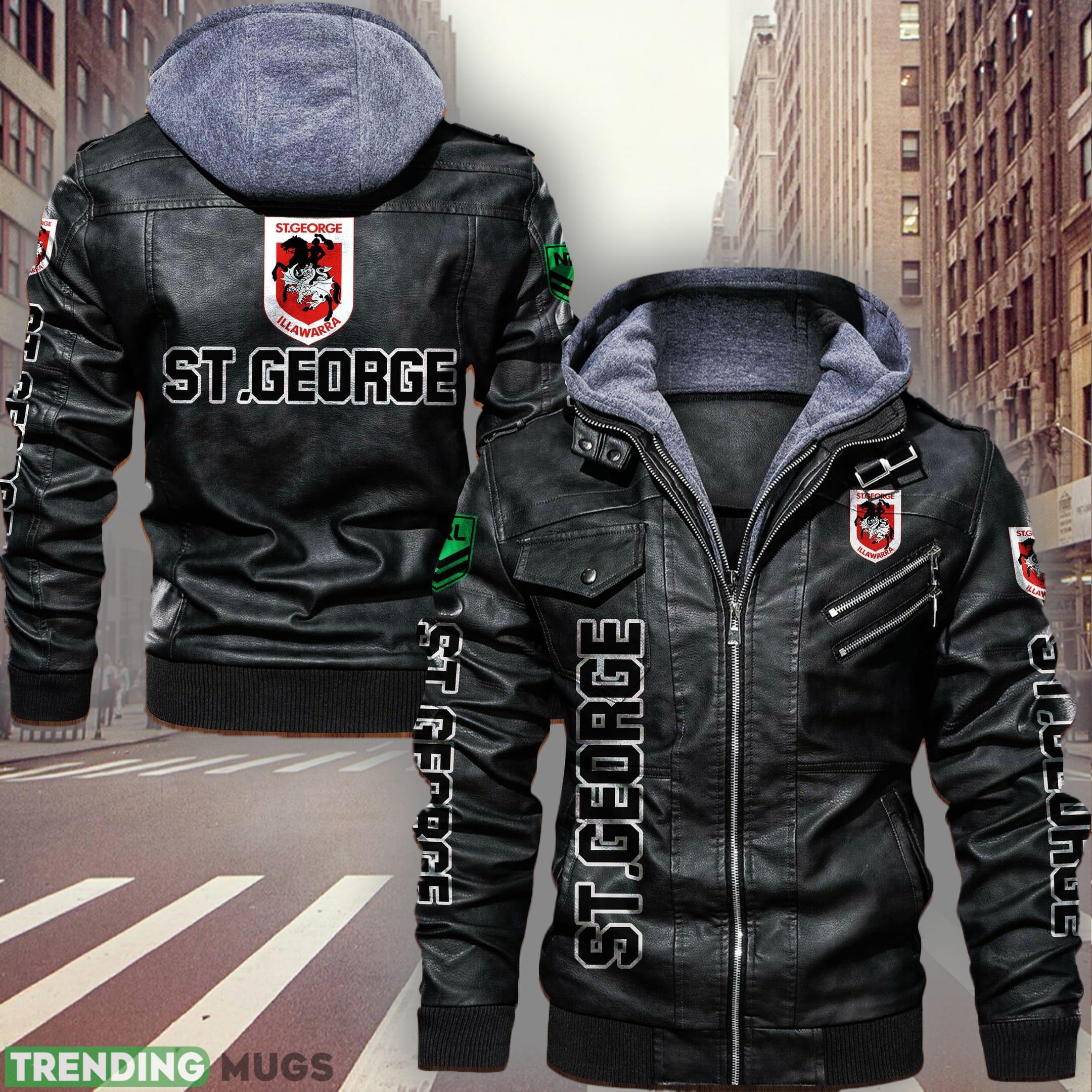 NRL St George Illawarra Dragons Design 6 Logo Black And Brown Leather Jacket For Fans Material Information