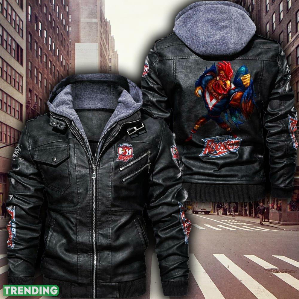 Some of the NRL Sydney Roosters Design 2 Logo Black And Brown Leather Jacket For Fans photos