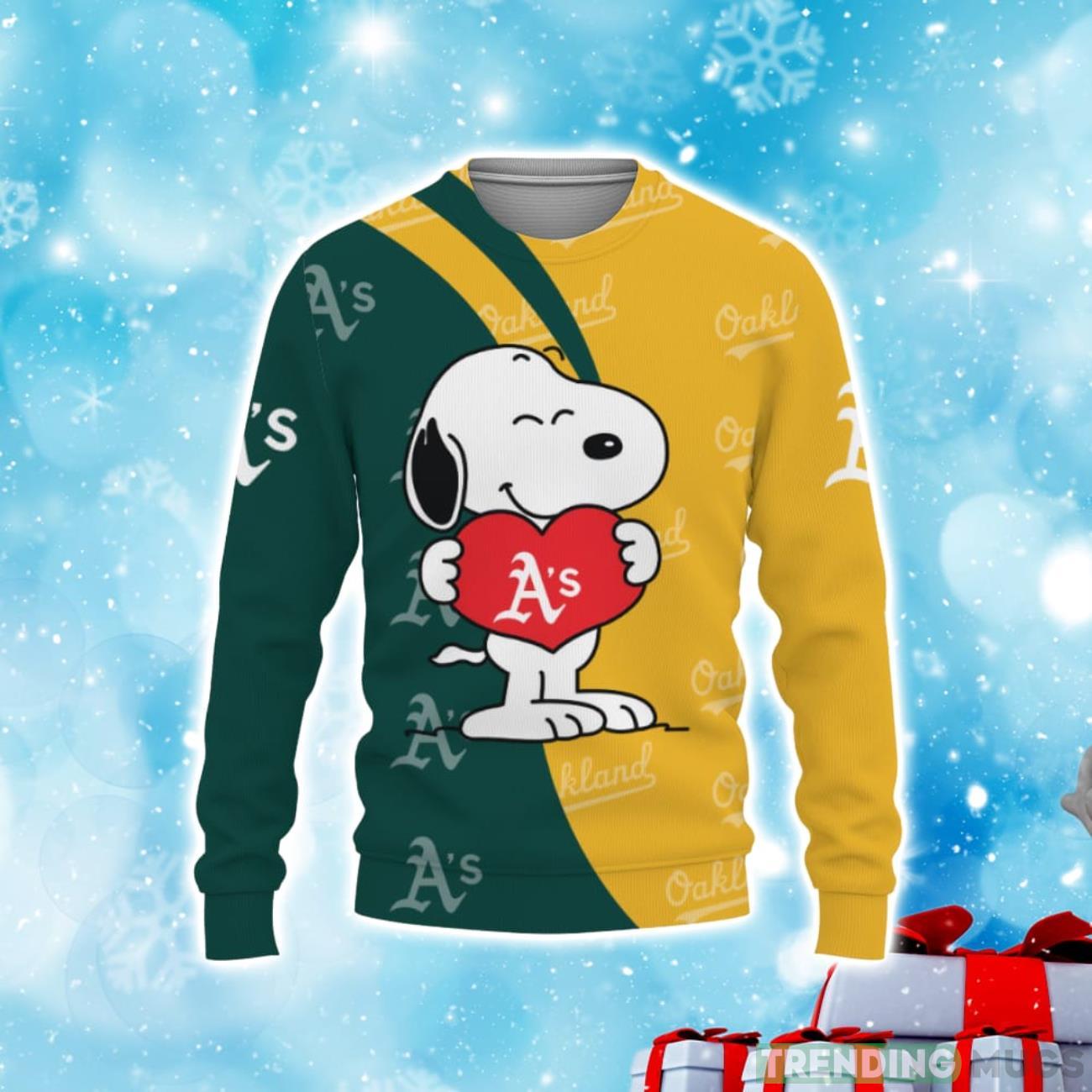 Oakland Athletics Snoopy Cute Heart American Sports Team Sweatshirt Christmas Sweater Product Photo 1