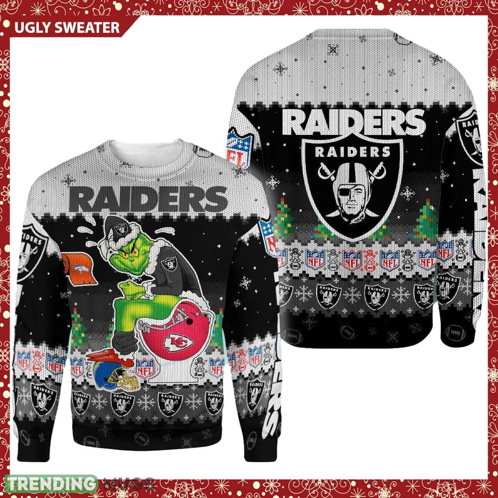 Oakland Raiders Funny Grinch Knitted Christmas 3D Sweater For Fans – Oakland Raiders Funny Grinch Knitted Christmas 3D Sweater For Fans