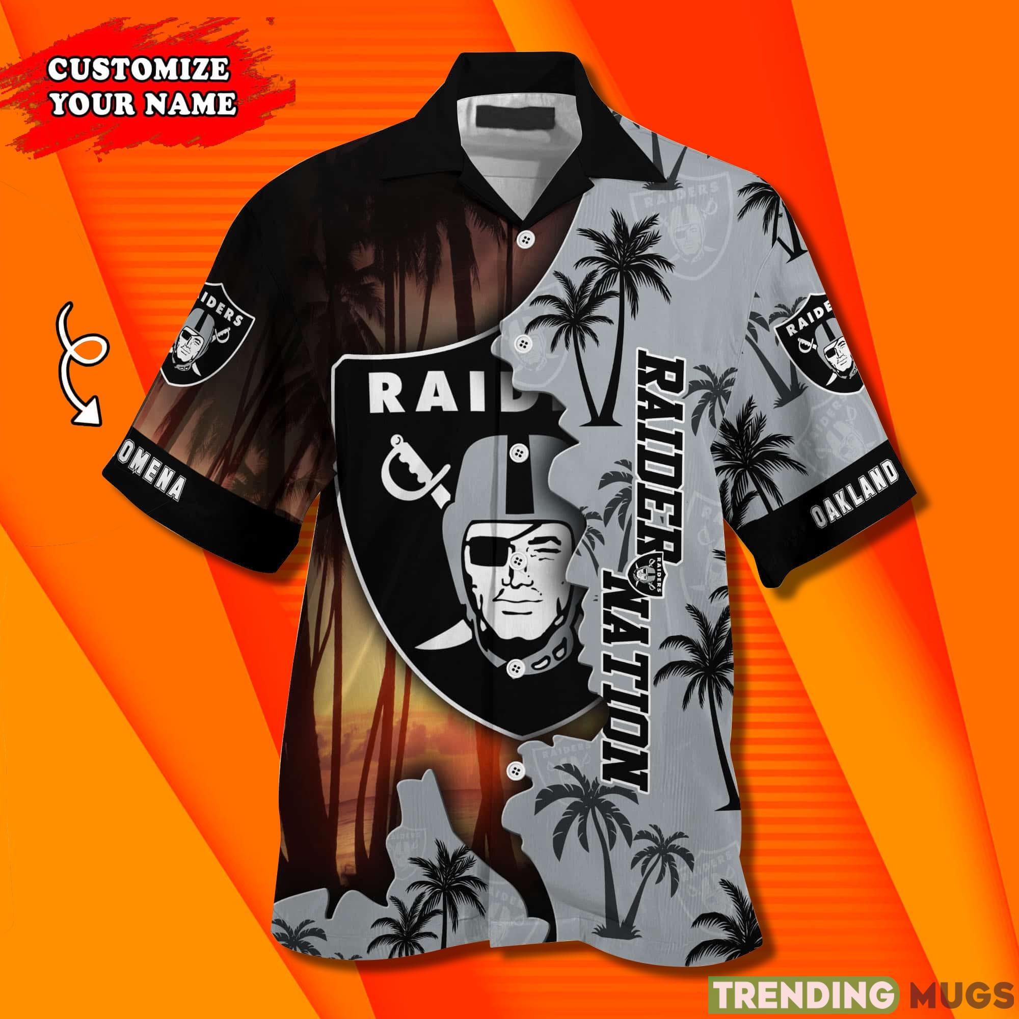 Oakland Raiders NF And Tropical Pattern Custom Name Hawaiian Shirt Details: