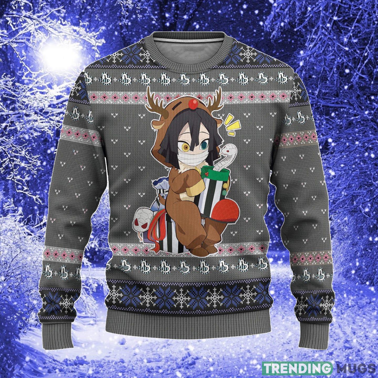 Crafted with care, this sweater features a comfortable and cozy fabric blend that is perfect for keeping you warm during the chilly winter season. The eye-catching design showcases Obanai Iguro, one of the iconic characters from the anime, in a festive and quirky Christmas theme.