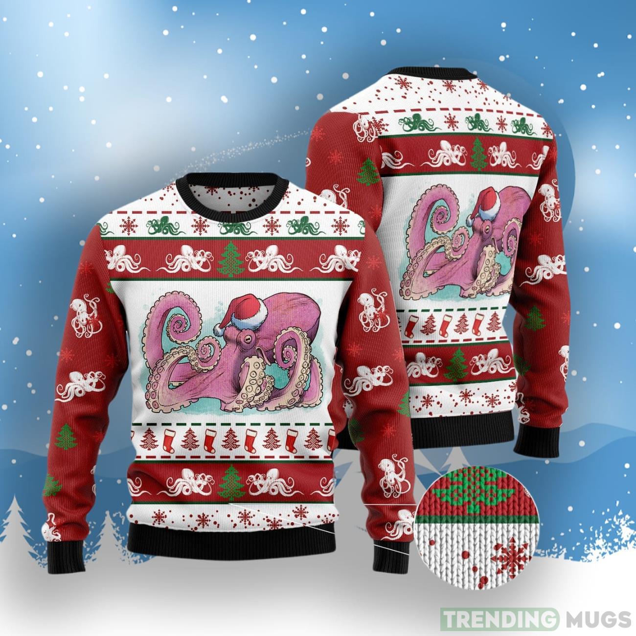 Featuring an adorable octopus dressed in its holiday best, this sweater combines whimsical charm with a touch of Christmas magic. The vibrant colors and playful design make it impossible to blend in with the crowd. Embrace the holiday spirit and let your unique style shine bright!