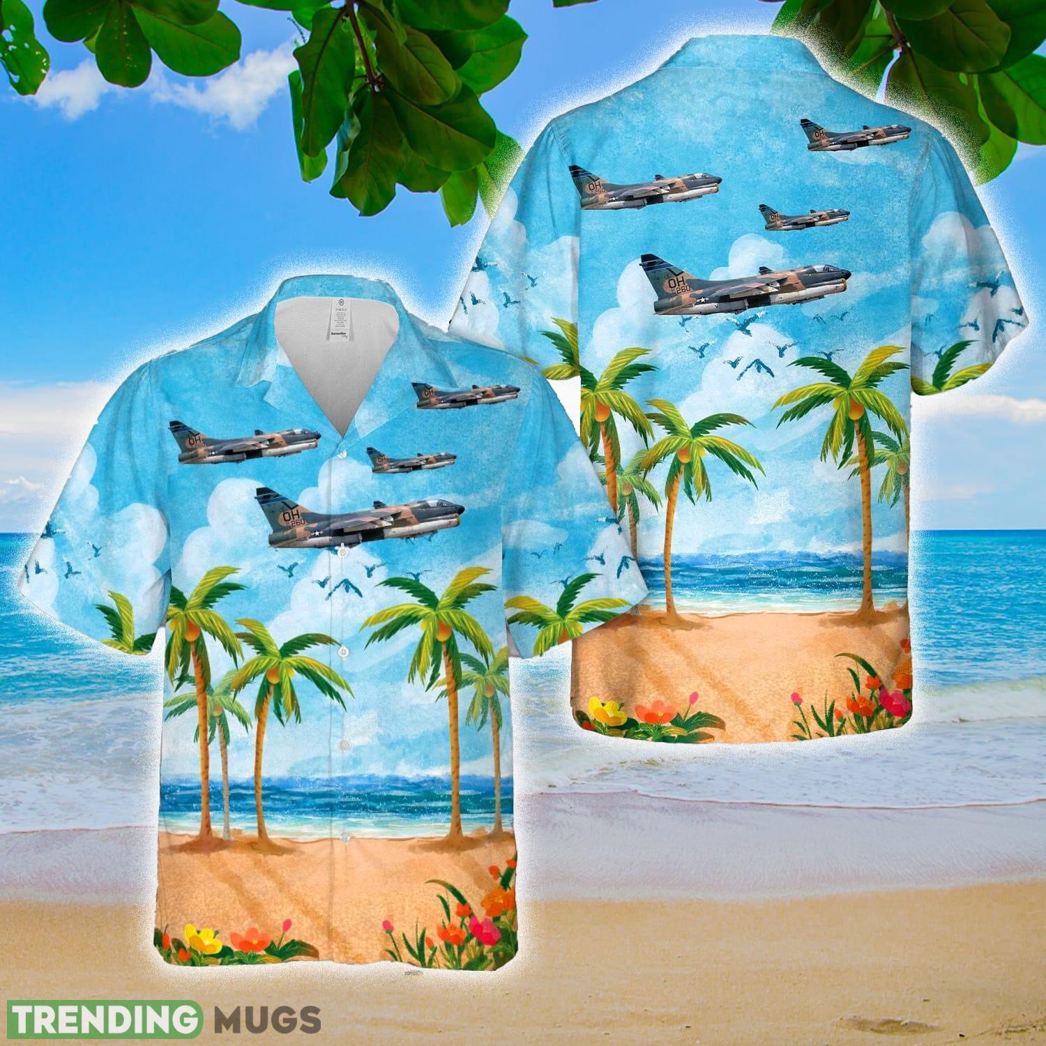 Ohio Air National Guard 166th Tactical Fighter Squadron A_7D Corsair II Hawaiian Shirt Summer Holidays Details:
