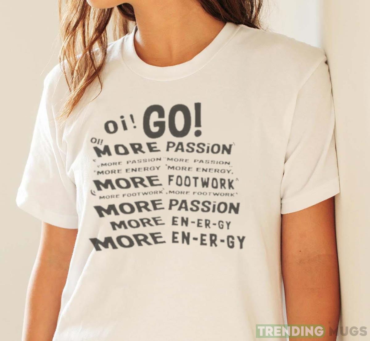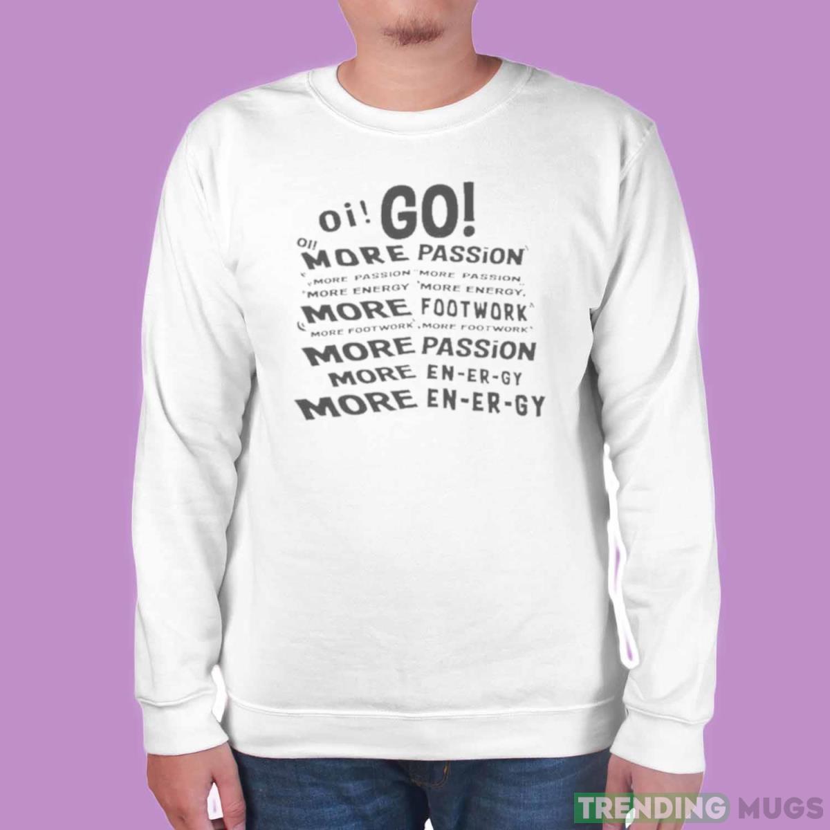 Oi Go More Passion More Energy More Footwork shirt Details