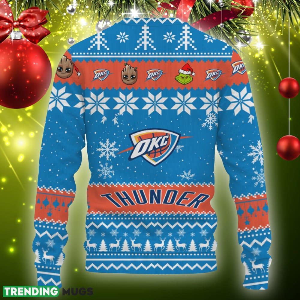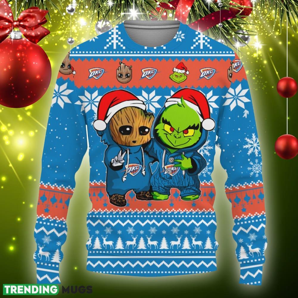 Oklahoma City Thunder Baby Groot And Grinch Best Friends Football American Knitted Christmas Sweater Informations: