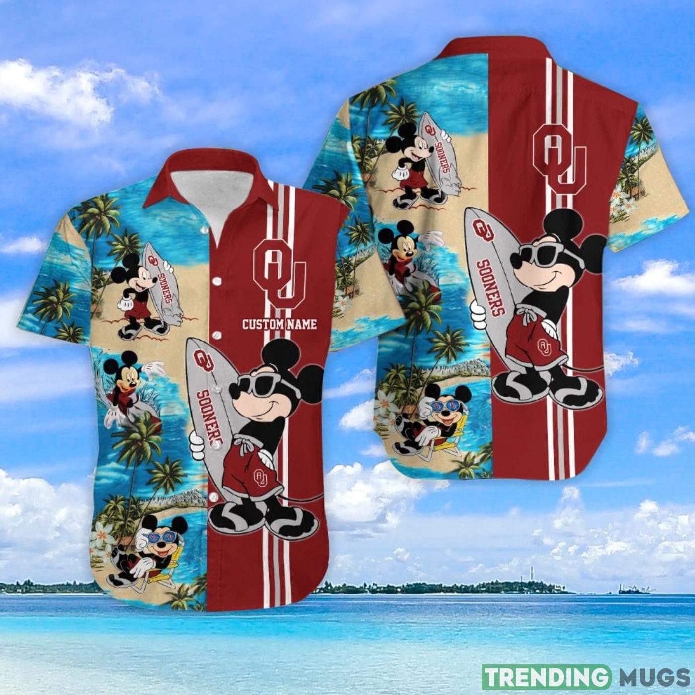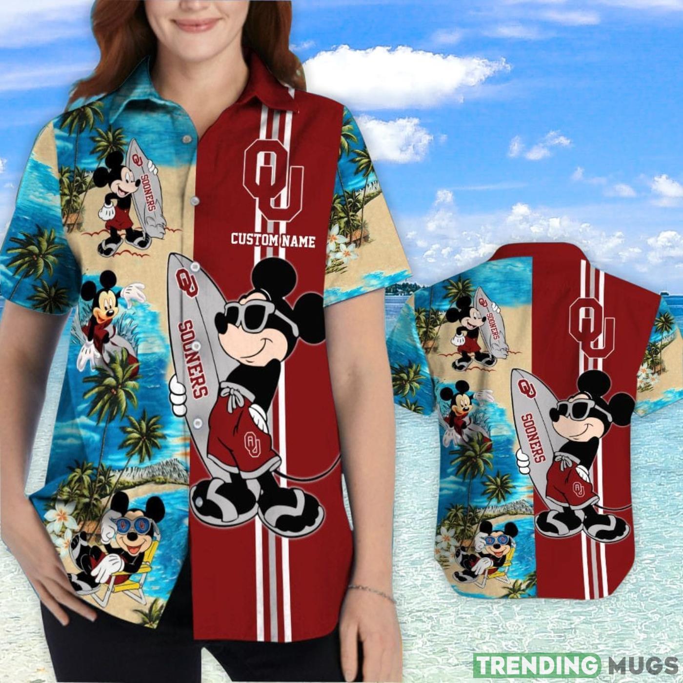 Oklahoma Sooners Mickey Surfing Lover Custom Name Hawaiian Shirt Details: