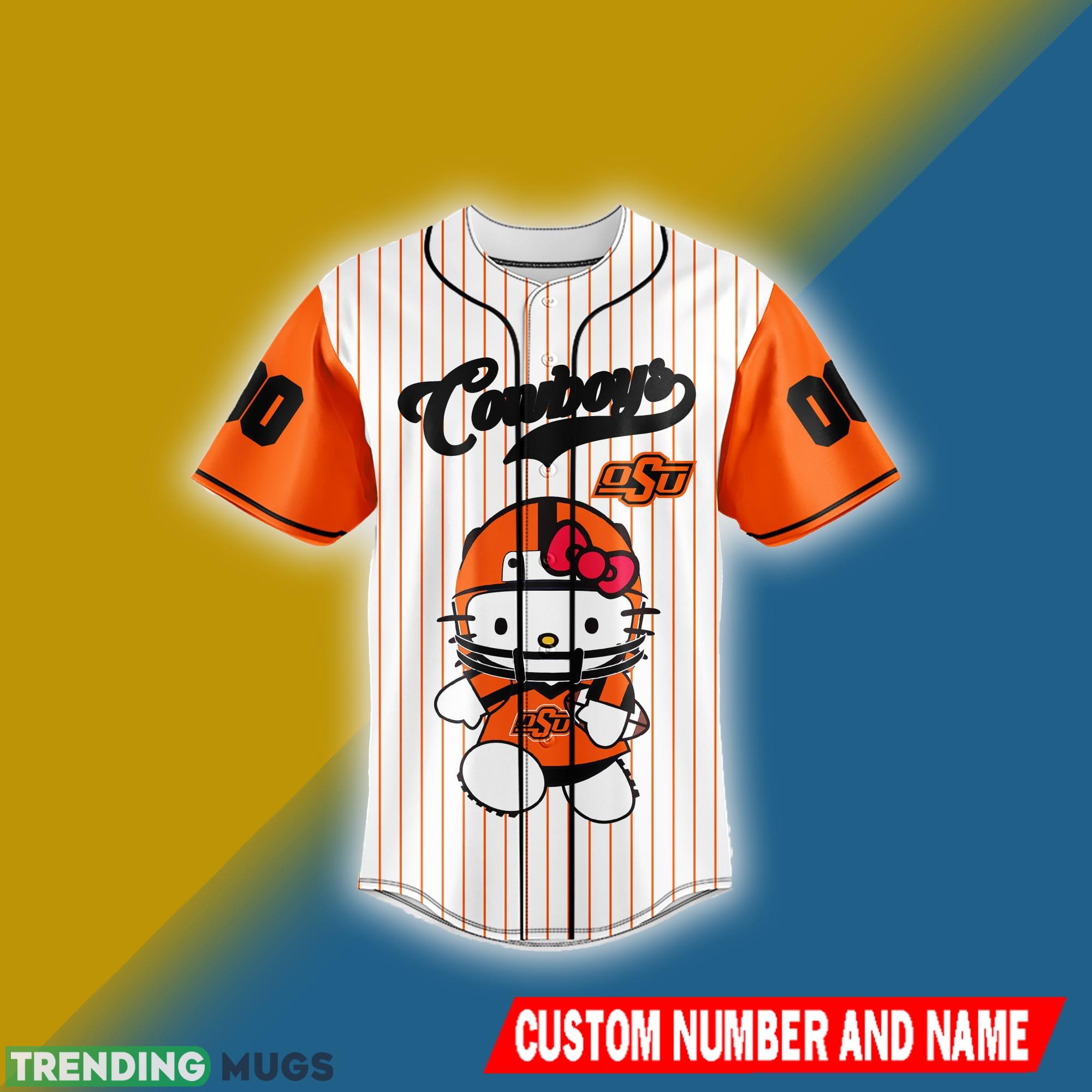 So why wait? Stand out from the crowd and unleash your inner fan with this one-of-a-kind Oklahoma State Cowboys Jersey Shirt NCAA Hello Kitty Custom Number And Name. Order yours today and let your team spirit soar to new heights in the most adorable way possible!