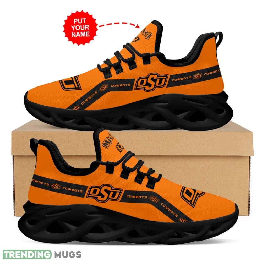 Step out in style and showcase your love for the Oklahoma State Cowboys with our Vintage Custom Name Max Soul Sneakers. These luxurious NCAA1 shoes are designed for both men and women who are true fans of the team.