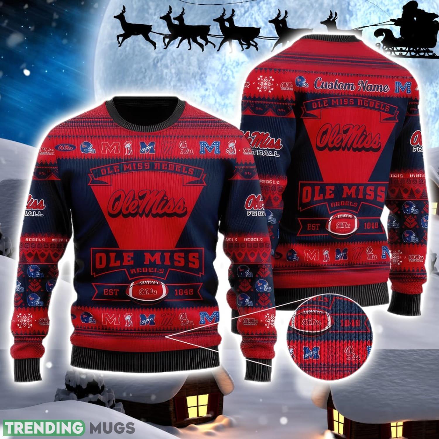 Ole Miss Rebels Team Custom Name Ugly Christmas Sweater For Men And Women Sport Gift Informations: