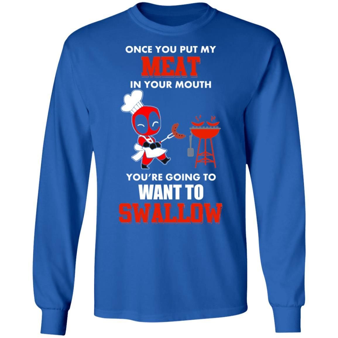 Once You Put My Meat In Your Mouth Deadpool Swallow Shirt. The shirt available in t-shirt, long sleeves, hoodies, sweatshirt,….
