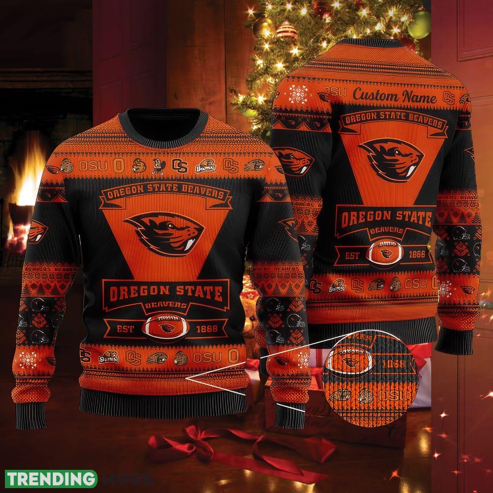Get ready to show off your team spirit this holiday season with the Oregon State Beavers and San Francisco 49ers Football Team Logo Ugly Christmas Sweater! This cozy and custom name sweater is the perfect way to combine your love for both teams in one festive and fashionable package.