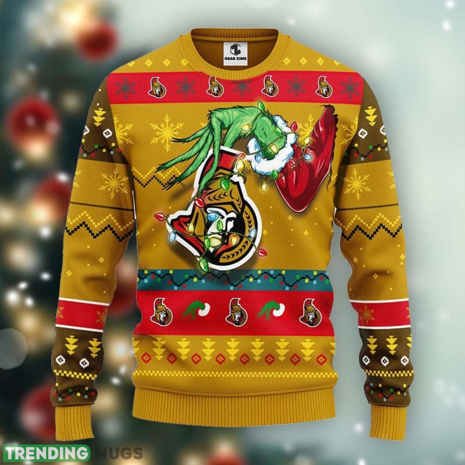 Featuring a vibrant and eye-catching design, this sweater showcases the mischievous Grinch himself, donning the iconic Ottawa Senators logo and colors. The intricate 3D detailing brings this sweater to life, making it a standout piece at any Christmas party or holiday gathering.