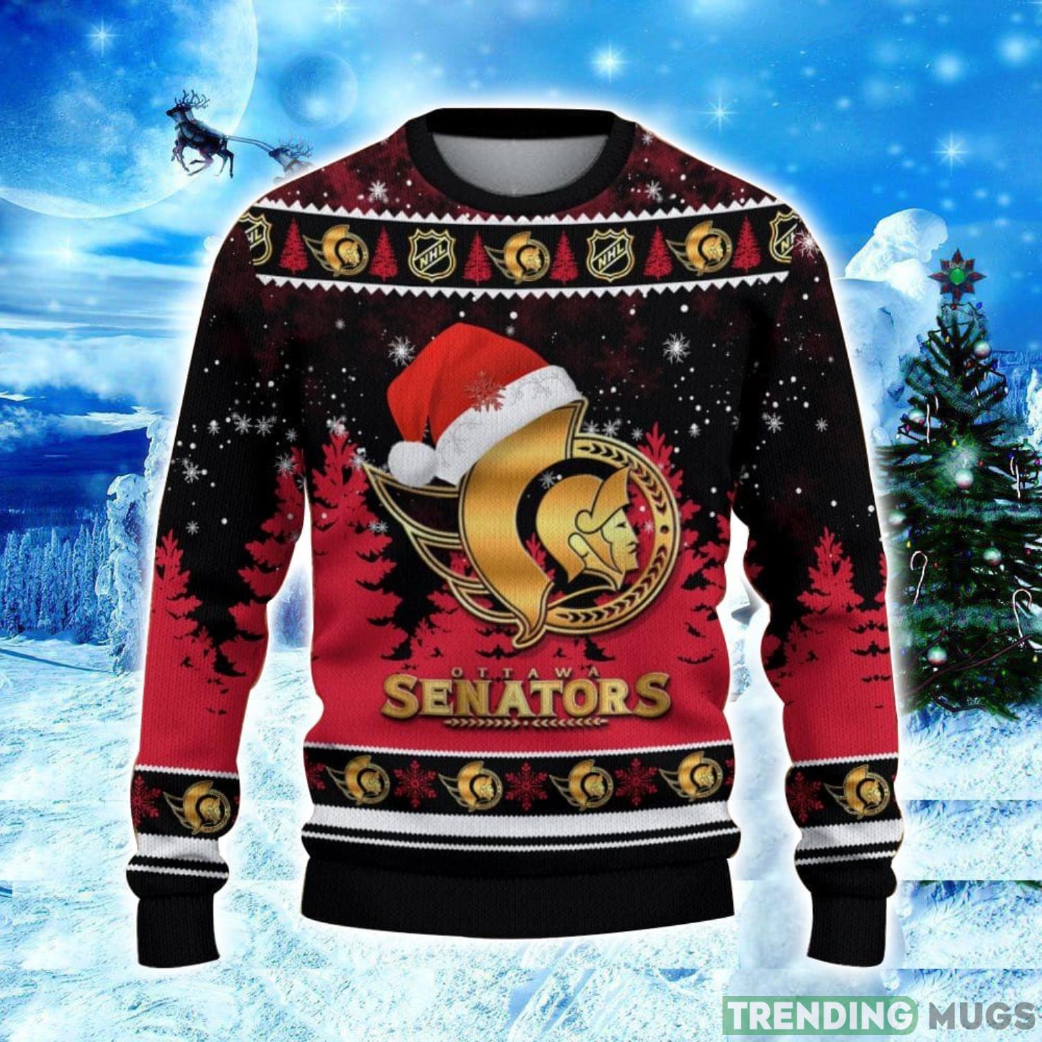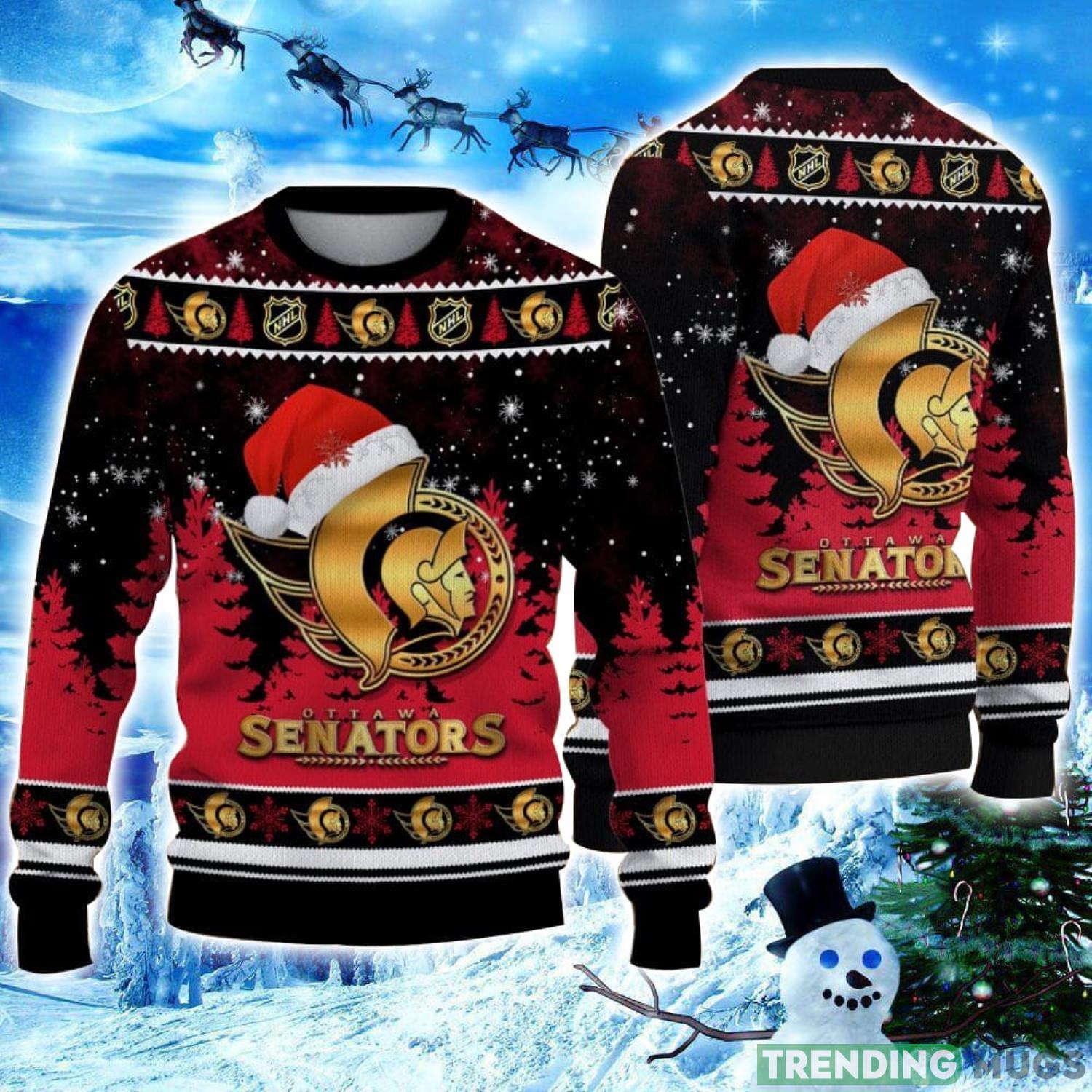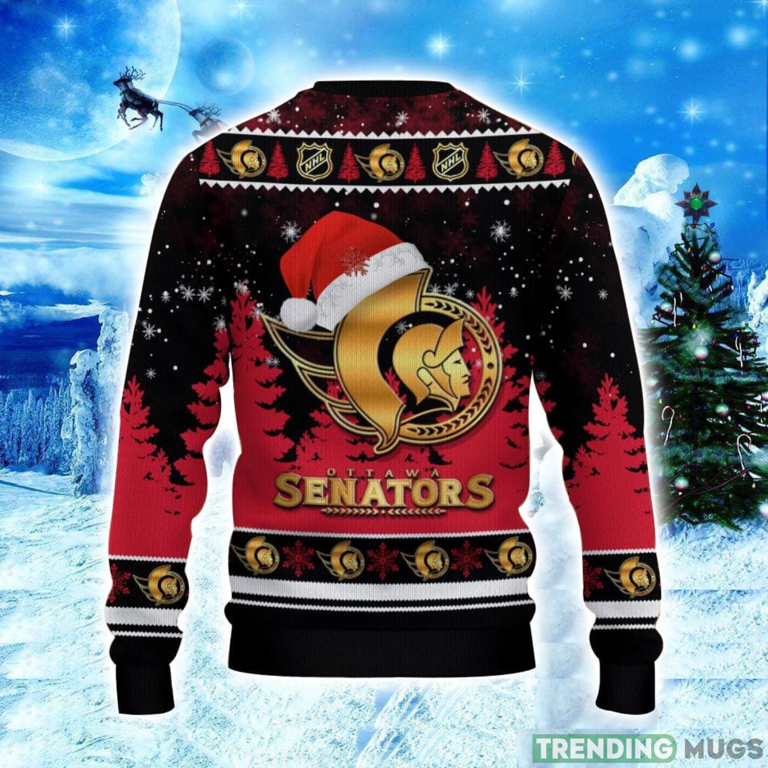 Ottawa Senators Logo Wearing Santa Hat Christmas Gift Ugly Christmas Sweater Christmas Gift Ideas Product Photo 1