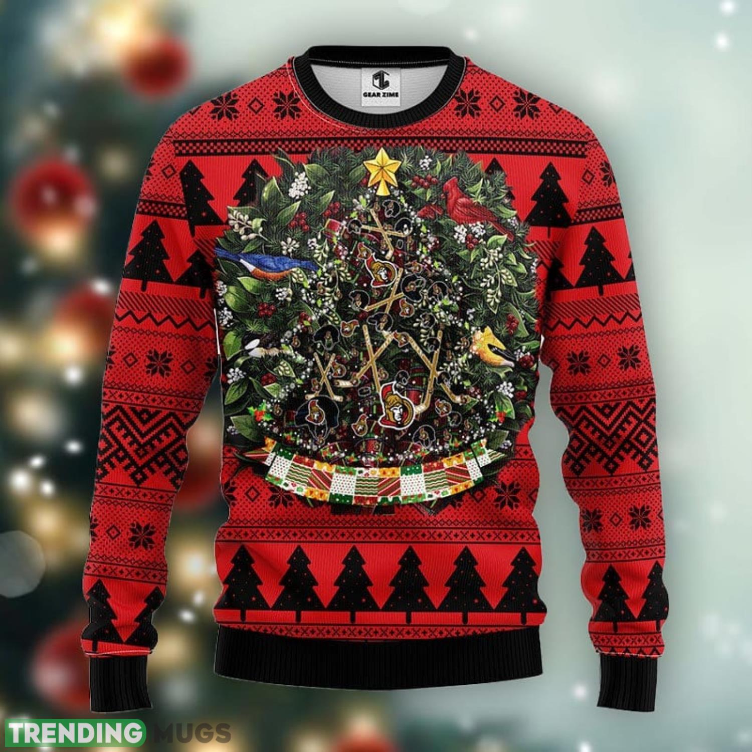 Featuring a unique design that combines the iconic Ottawa Senators logo with classic Christmas elements, this sweater is sure to be a hit at any holiday party or family gathering. The tree ball pattern adds a touch of whimsy, making it a standout piece that will bring joy to everyone around you.