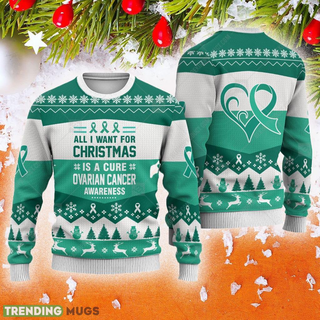 Ovarian Cancer Awareness All I Want For Is A Cure Animals Ugly Christmas Sweater AOP Gift For Men And Women Informations:
