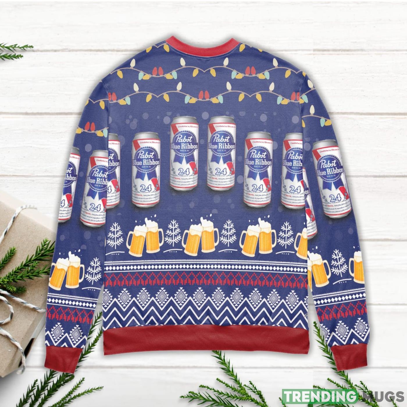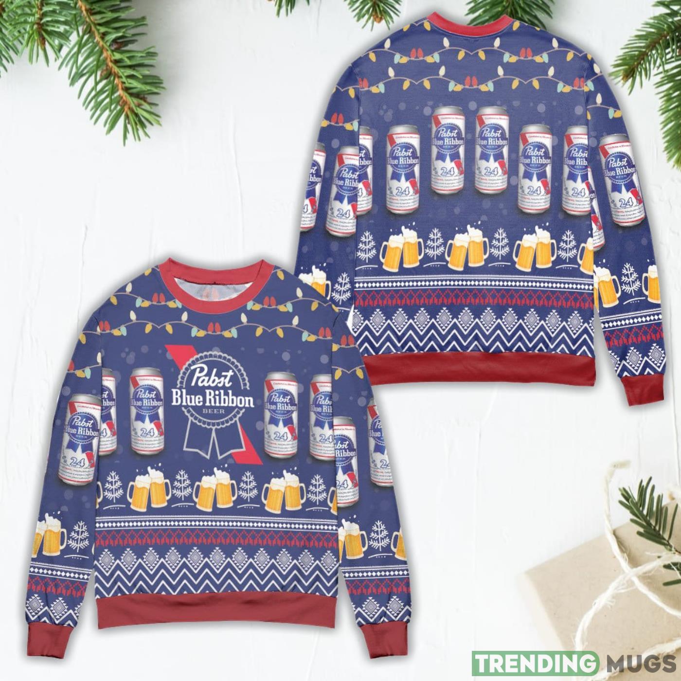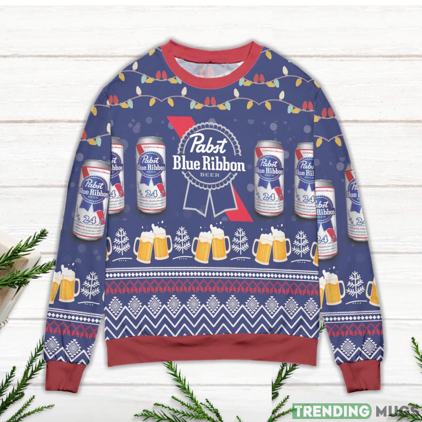 Pabst Blue Ribbon Beer Lights And Snow Ugly Christmas Sweater Informations: