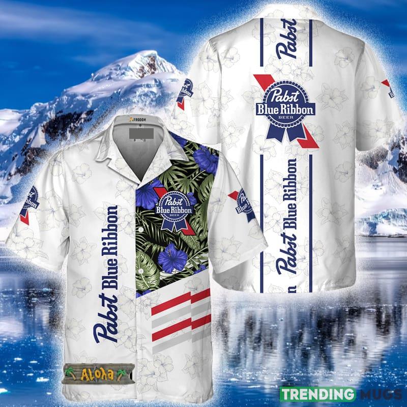 Pabst Blue Ribbon White Tropical Flower Hawaiian Shirt For Men And Women Gift Hawaiian Beer Details: