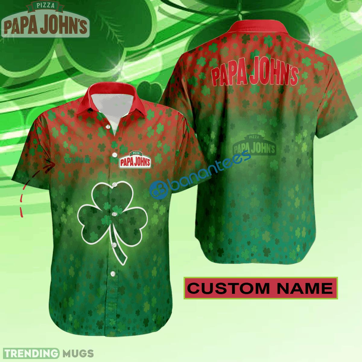 Papa John's Pizza Hawaiian Shirt Logo Brand Design Patrick Day Custom Name Hawaiian Shirt