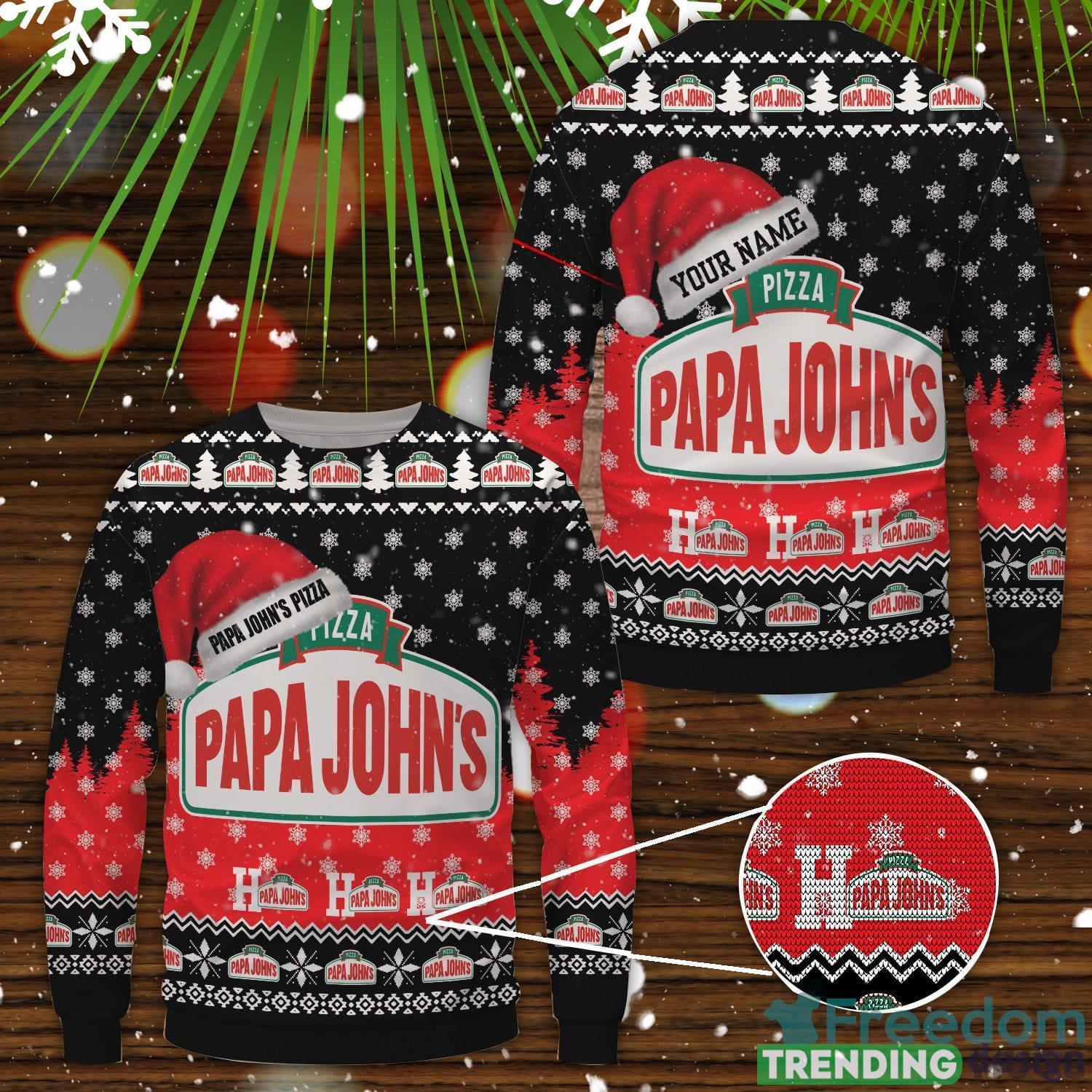 Papa John's Pizza Santa Hat Pattern Ugly Sweater Uniform Sweater Party Gift Custom Name 3D Sweater