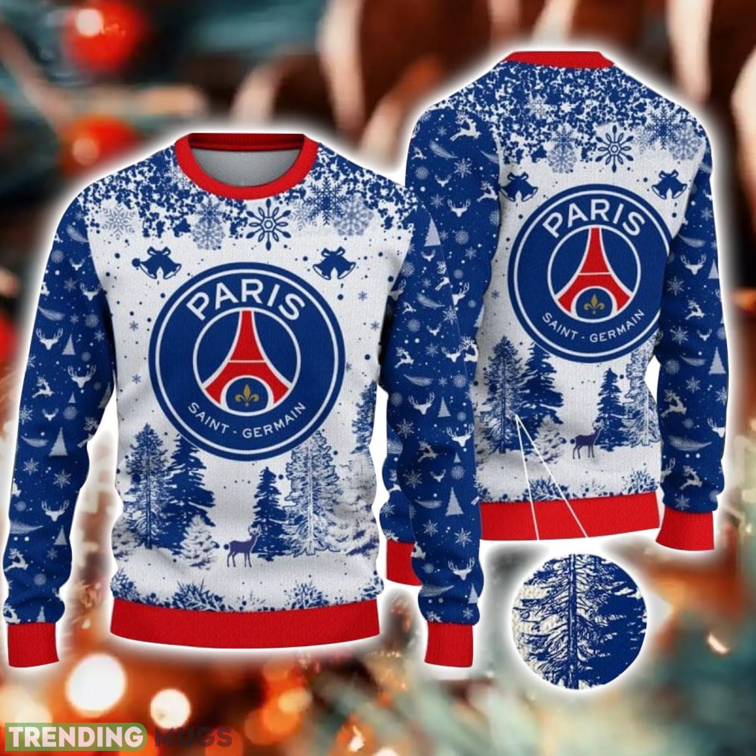 Some of the Paris Saint-Germain Big Logo Pine Trees Big Fans Gift Christmas Sweater For Men And Women photos