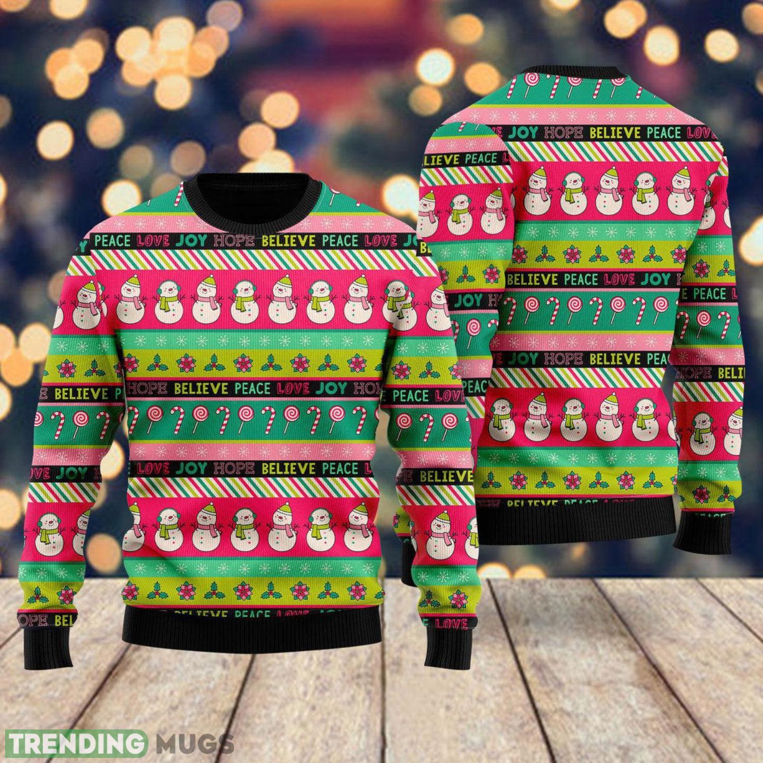 Peace Love Joy Cute Snowman Ugly Christmas Sweater Cute Christmas Gift Informations: