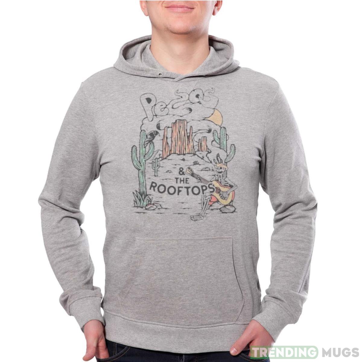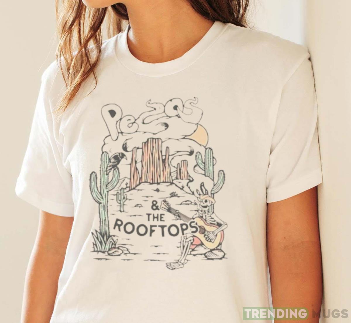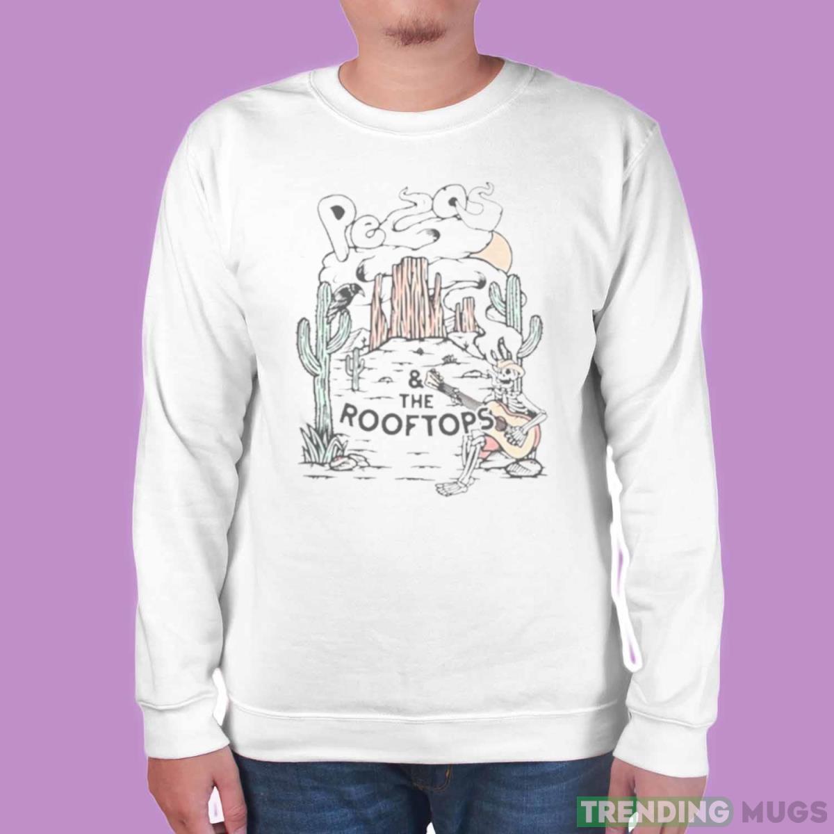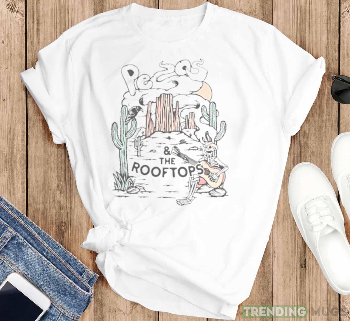 Crafted with utmost care, this shirt features a bold and vibrant design that showcases a smoking skeleton, symbolizing the rebellious spirit of Pecos & The Rooftops. The intricate details and artistic elements make this tee an absolute must-have for any music enthusiast or fashion-forward individual.