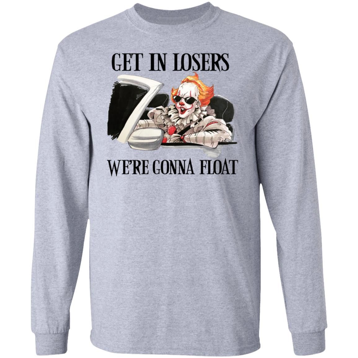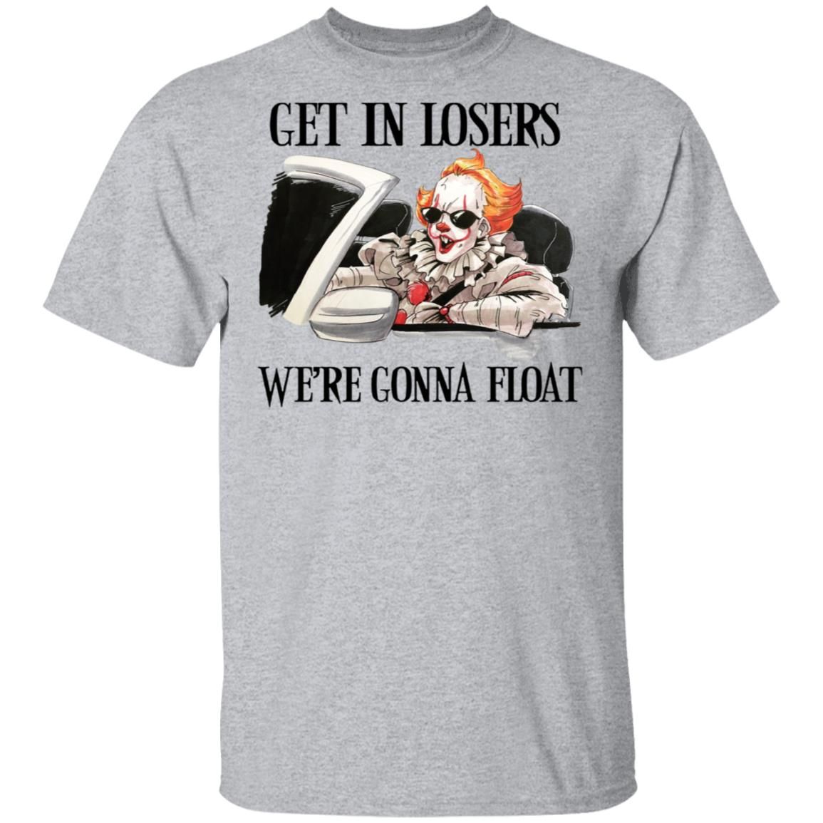 Pennywise Get In Losers We’re Gonna Float Shirt. Are you looking for some special for your friends, your father, your mother, son, boyfriend, girlfriend? We have this idea for you. This shirt is a soft shirt. Made of ringspun cotton for smoothness and body, and added rayon and polyester for extra stretch, drape, and breathability, this will be your new favorite t-shirt.