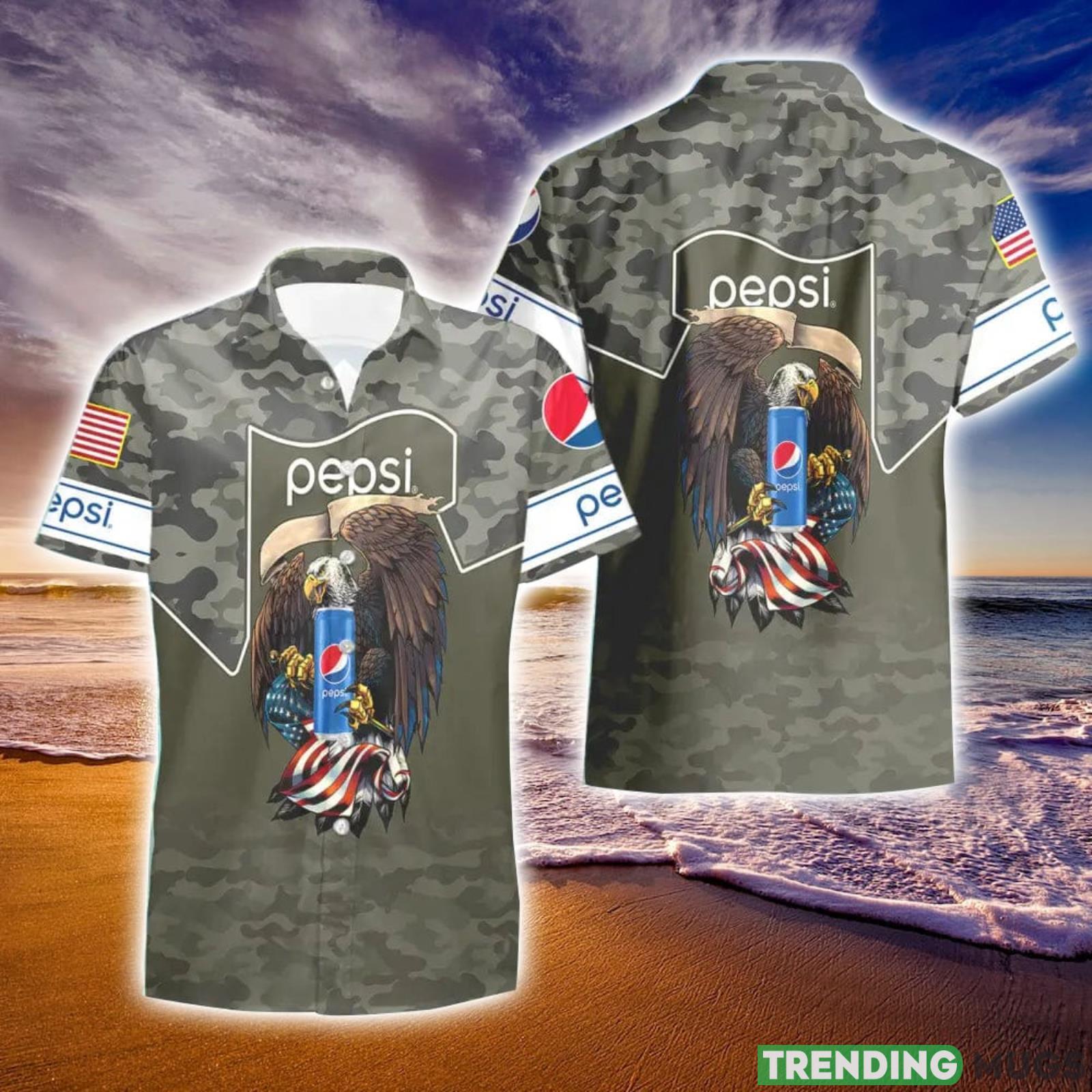 Pepsi Green Camo Eagle Usa Flag Hawaiian Shirt And Shorts Best Gift For Summer Holiday Details: