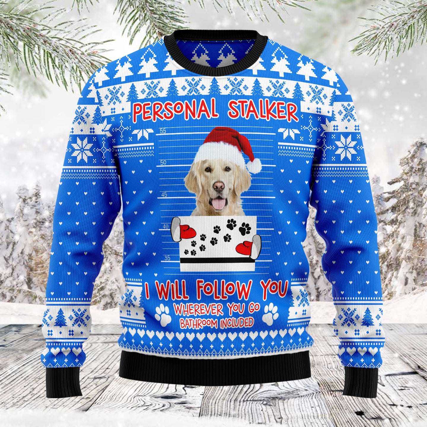 Personal Stalker Golden Retriever Ugly Christmas Sweater Gift Men Women – 110923-105905