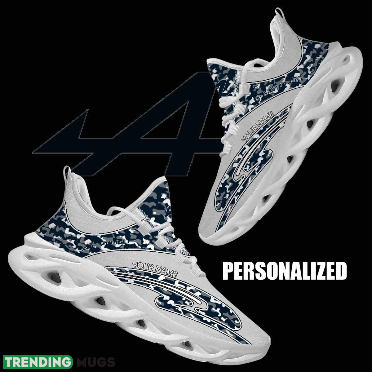 Whether you’re a seasoned racer or just a fan of the sport, these emblematic running sneakers are a must-have addition to your collection. So lace up, rev your engines, and get ready to take on the day in style with our Personalized Camo Design F1 Racing BWT Alpine F1 Team Max Soul Shoes Emblematic Running Sneaker!