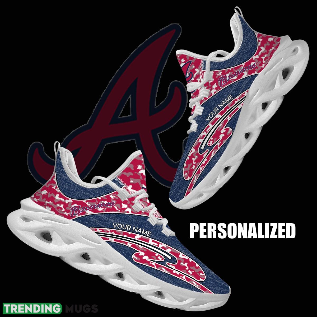 Some of the Personalized Camo Design MLB Atlanta Braves Max Soul Shoes Emblem Running Sneaker photos