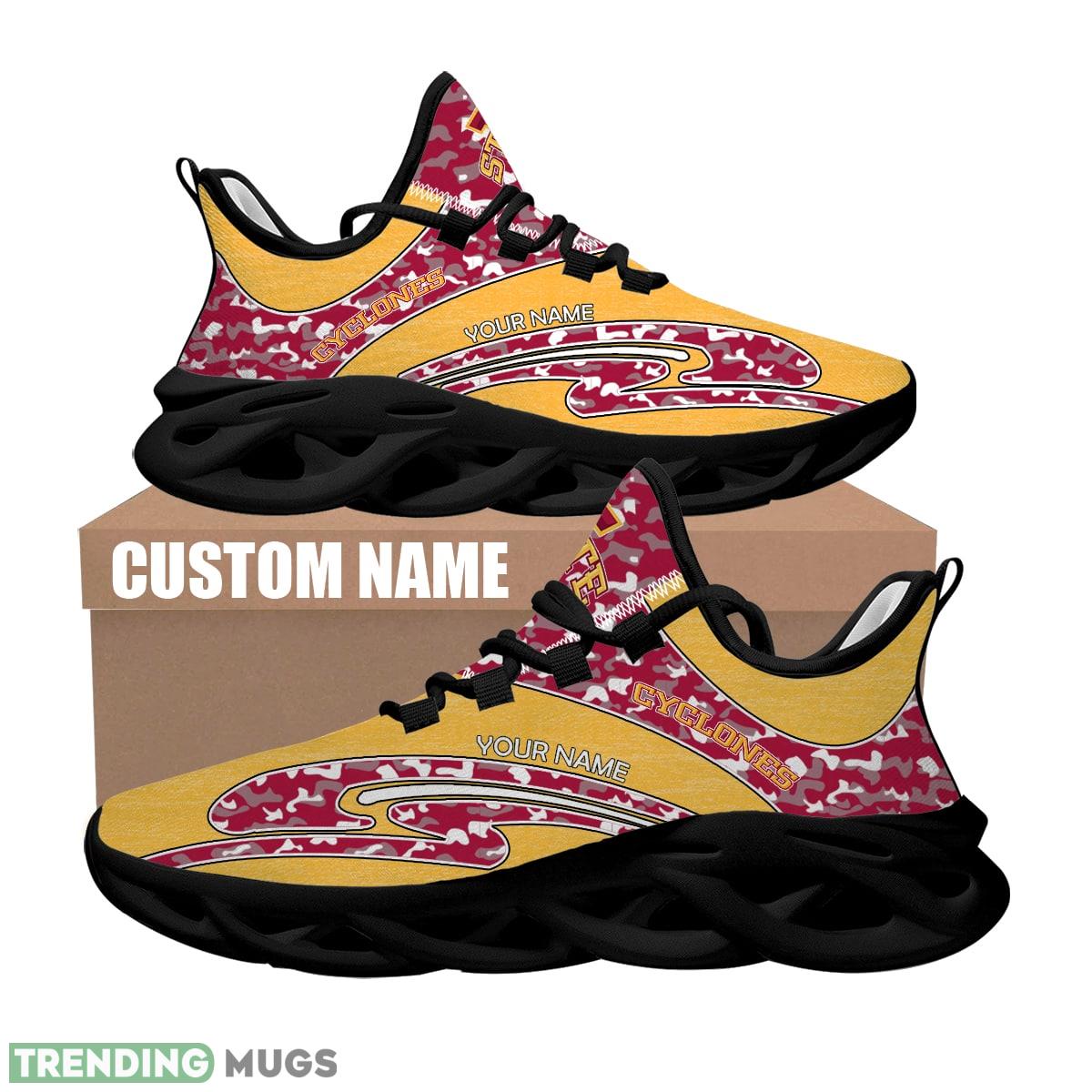 Stand out from the crowd with our Personalized Camo Design NCAA Iowa State Cyclones Max Soul Shoes Emblem Chunky Sneaker! Show off your team spirit in style with these unique and eye-catching sneakers. Made with high-quality materials and featuring a chunky sole for added comfort, these shoes are perfect for any die-hard Iowa State Cyclones fan. Personalize them with your own name or message to make them truly one-of-a-kind. Step up your game and rock your team pride with these must-have sneakers!