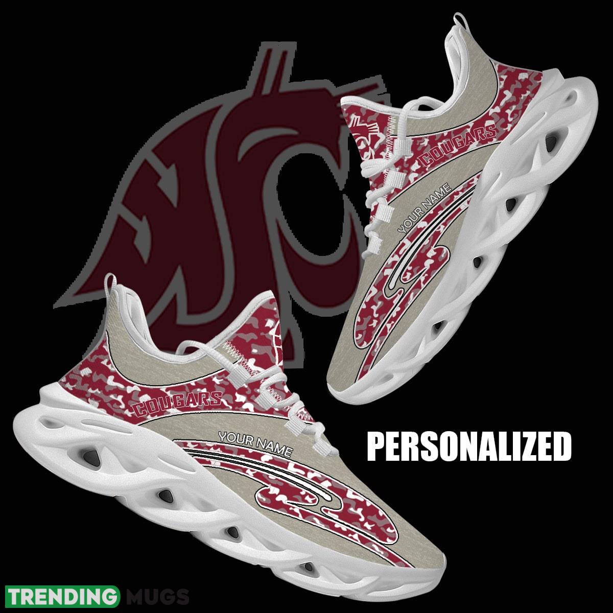 Step out in style and show off your team spirit with our Personalized Camo Design NCAA Washington State Cougars Max Soul Shoes Imagery Sport Sneaker! These sleek and comfortable sneakers feature a unique camo design personalized with the iconic Washington State Cougars logo, making them the perfect footwear for any die-hard fan. Whether you’re heading to a game or just out and about, these shoes will keep you looking fresh and repping your team in style. Don’t miss out on the opportunity to elevate your shoe game with these one-of-a-kind kicks!